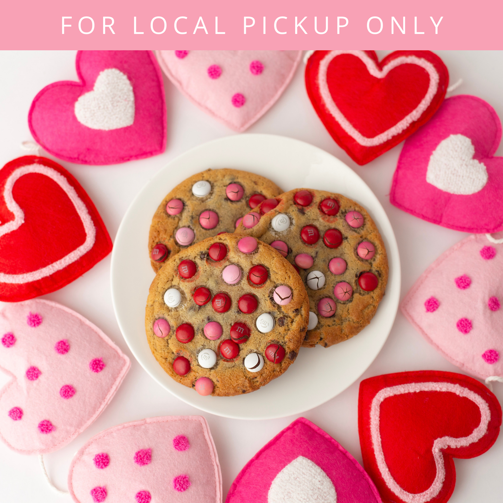 Say hello to ellenJAY's Jumbo Valentine's Day Chocolate Chip Cookies with Sweetheart M&Ms! Baked fresh in our Mobile, Alabama bakery, these soft-baked, oversized cookies are a delicious way to celebrate the season of love. Made with our signature chocolate chip cookie recipe and topped with festive Valentine's Day M&Ms, each bite is a perfect mix of chewy, chocolatey, and candy-coated goodness.