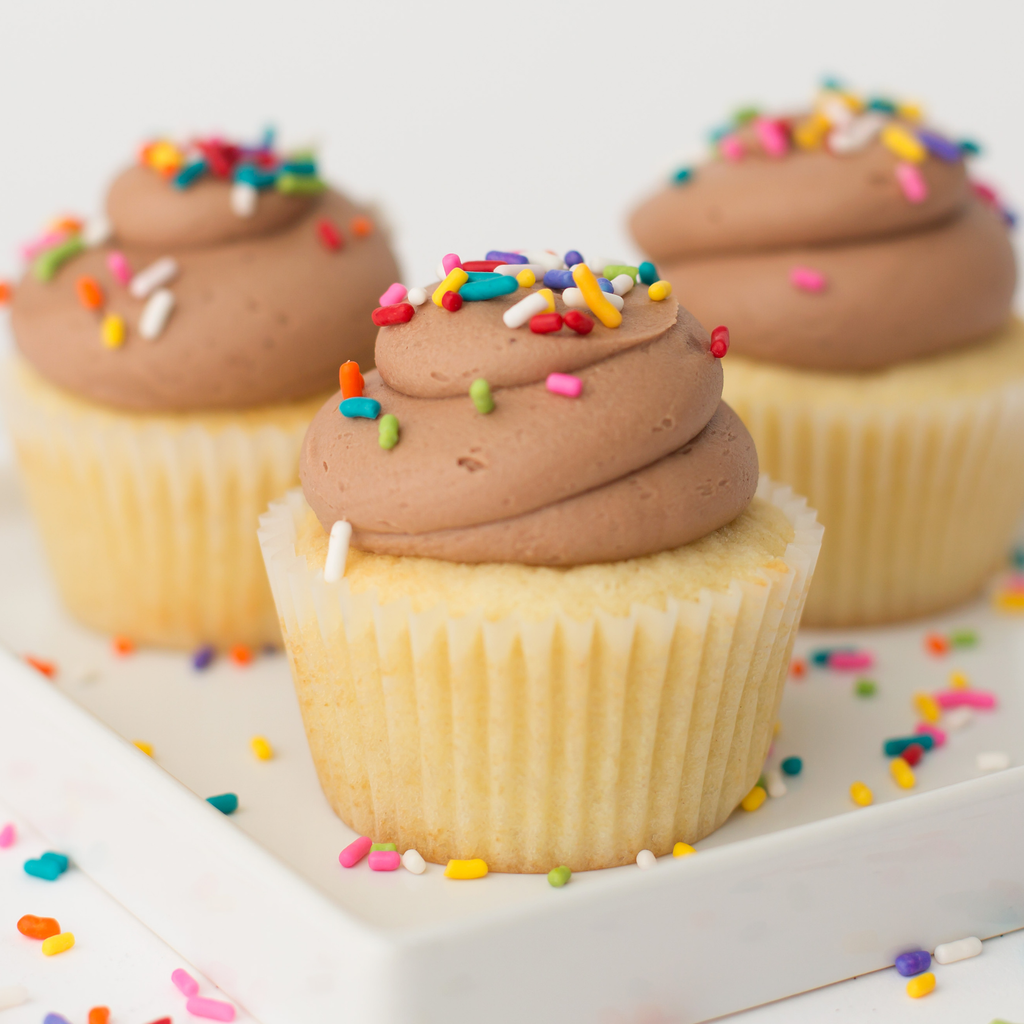 You know the flavor combo your grandma made famous. Made fresh for your order, our Vanilla with Chocolate Buttercream Cupcakes feature classic scratch-made vanilla cake topped with rich chocolate buttercream for that timeless chocolate-and-vanilla pairing everyone loves. Sweet, nostalgic, and ready to celebrate — perfect for birthday parties, school events, and team meetings.