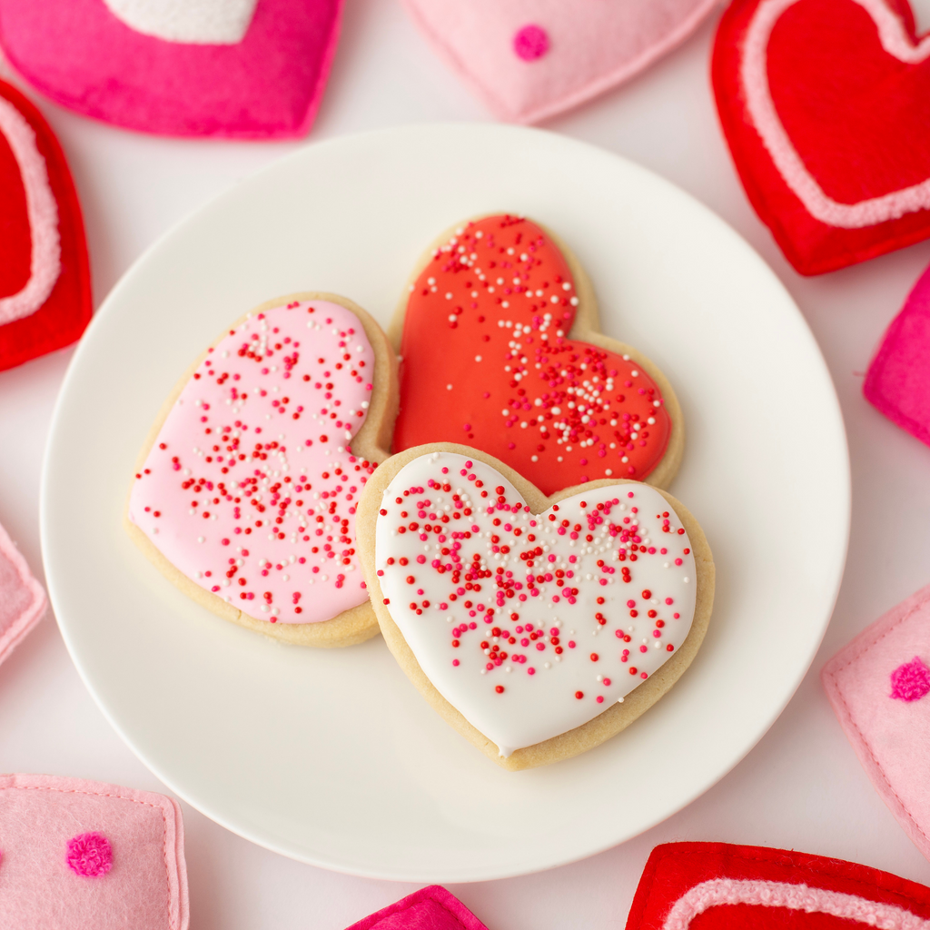 Fall in love, one sweet bite at a time, with ellenJAY’s Valentine's Day Vanilla Heart Sugar Cookie Gift Box! These heart-shaped classic sugar cookies are baked from scratch with real butter, topped with royal icing, and finished with festive sprinkles. Handmade in our Mobile, Alabama bakery, each cookie is a little piece of LOVE.